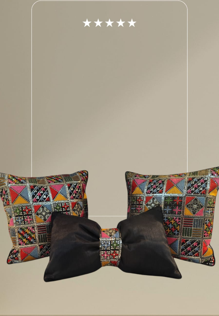 Unique, stylish cushion covers embroidered or woven with intricate patterns and vibrant colors that complement any interior décor.