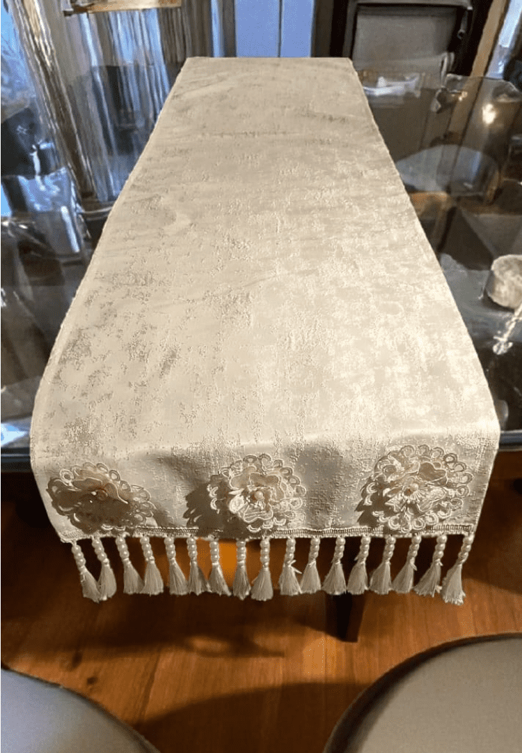 Elevate your dining with our elegant table runners featuring exquisite lace, tassels, and classic designs.