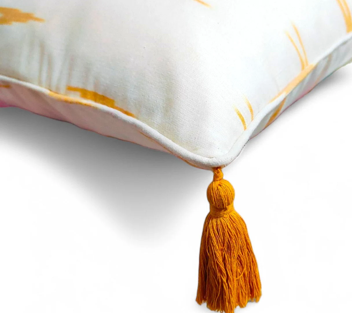 What makes this piece truly special are the playful color shade tassels on each corner, adding movement, charm, and a subtle boho vibe to your space. Whether styled on your sofa, accent chair, or bedroom nook, The Ikat Muse infuses warmth and personality into any setting.